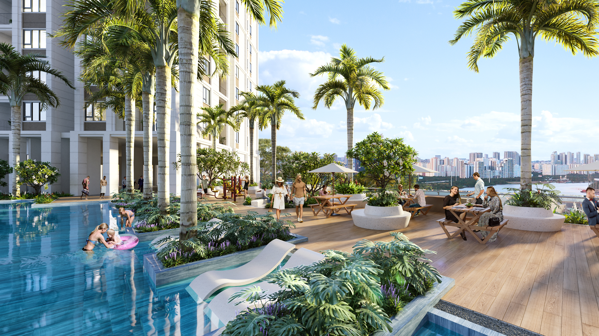 With facilities meeting five-star standards, such as the Aurora swimming pool with a city view, a BBQ area, a yoga area, a convention room, a library and an area for events, residents of the project can hold birthday parties and meetings. Besides these facilities, green spaces at the project will offer a distinct sense of space and time to residents.