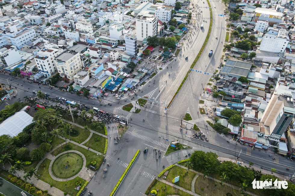 Ngã tư Huỳnh Tấn Phát – Nguyễn Văn Linh là điểm kết nối luồng giao thông các hướng từ quận 7, Nhà Bè đến cầu Thủ Thiêm 4 qua TP Thủ Đức – Ảnh: LÊ PHAN