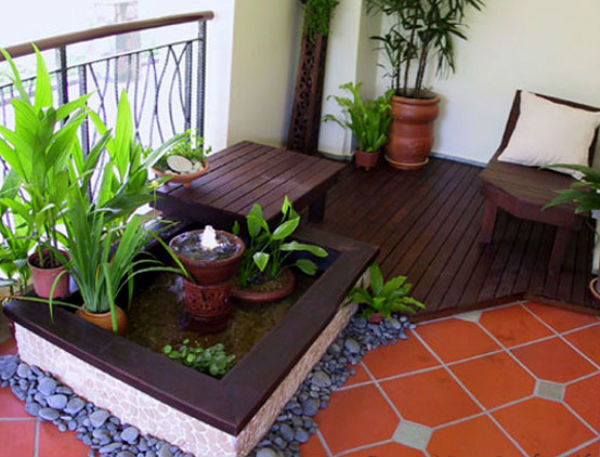 Góc ban công nhà bạn sẽ thật tuyệt vời với ánh nến lung linh, lối đi rải sỏi và hồ nước nhỏ róc rách. Bạn có thể đắm mình bên không gian “spa” thư thái này sau mỗi ngày làm việc mệt mỏi.