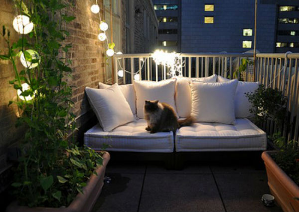 Ban công là một không gian mở nên vào ban ngày, ánh sáng luôn được cung cấp đầy đủ. Tuy nhiên khi màn đêm buông xuống, không gian này rất cần nguồn sáng khác để chiếu sáng xung quanh. Có thể tận dụng ánh sáng đèn trang trí để làm ban công thêm lãng mạn.